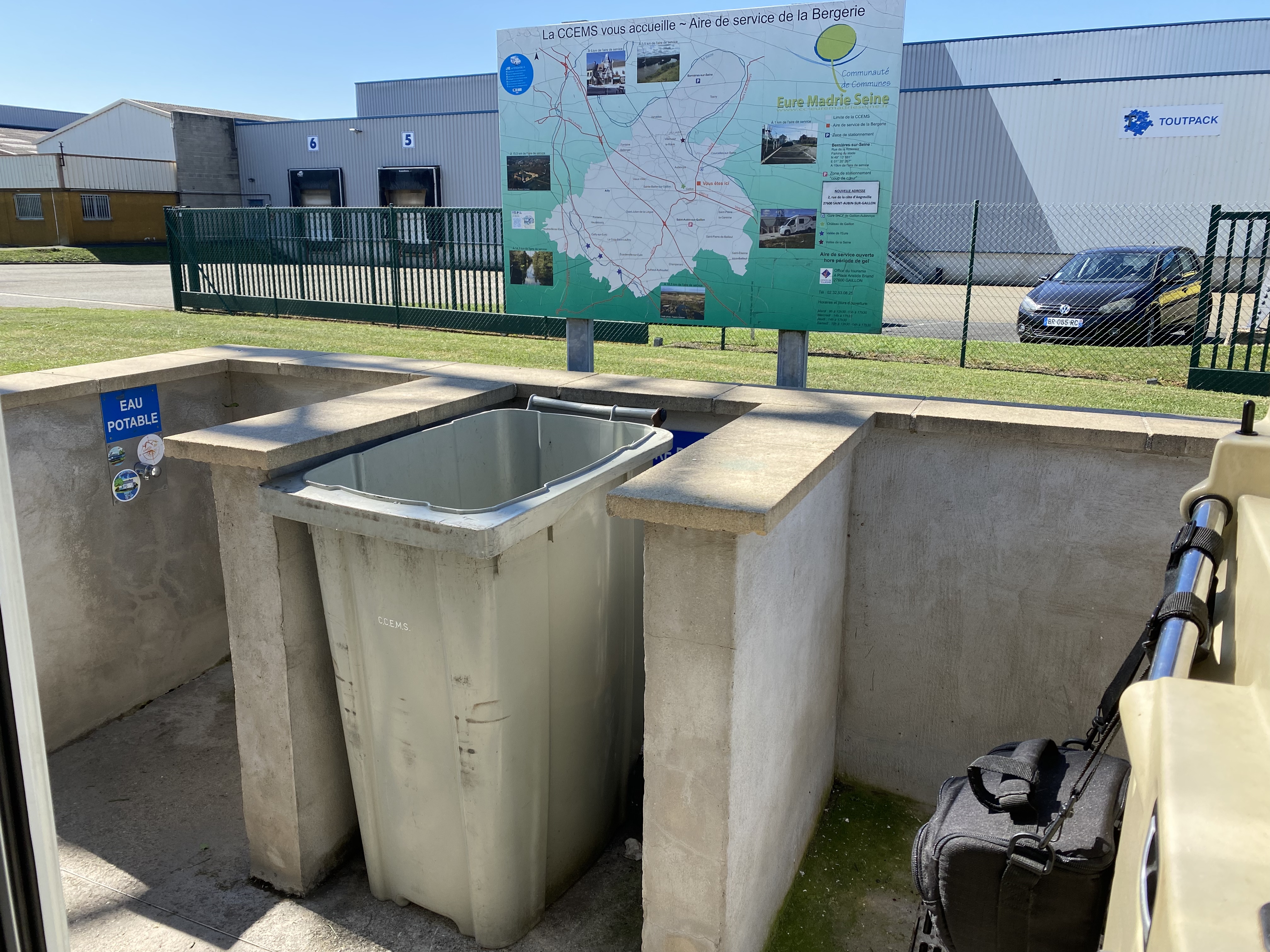 aire de service camping-car ( eau , vidange , wc , poubelle .. gratuit merci