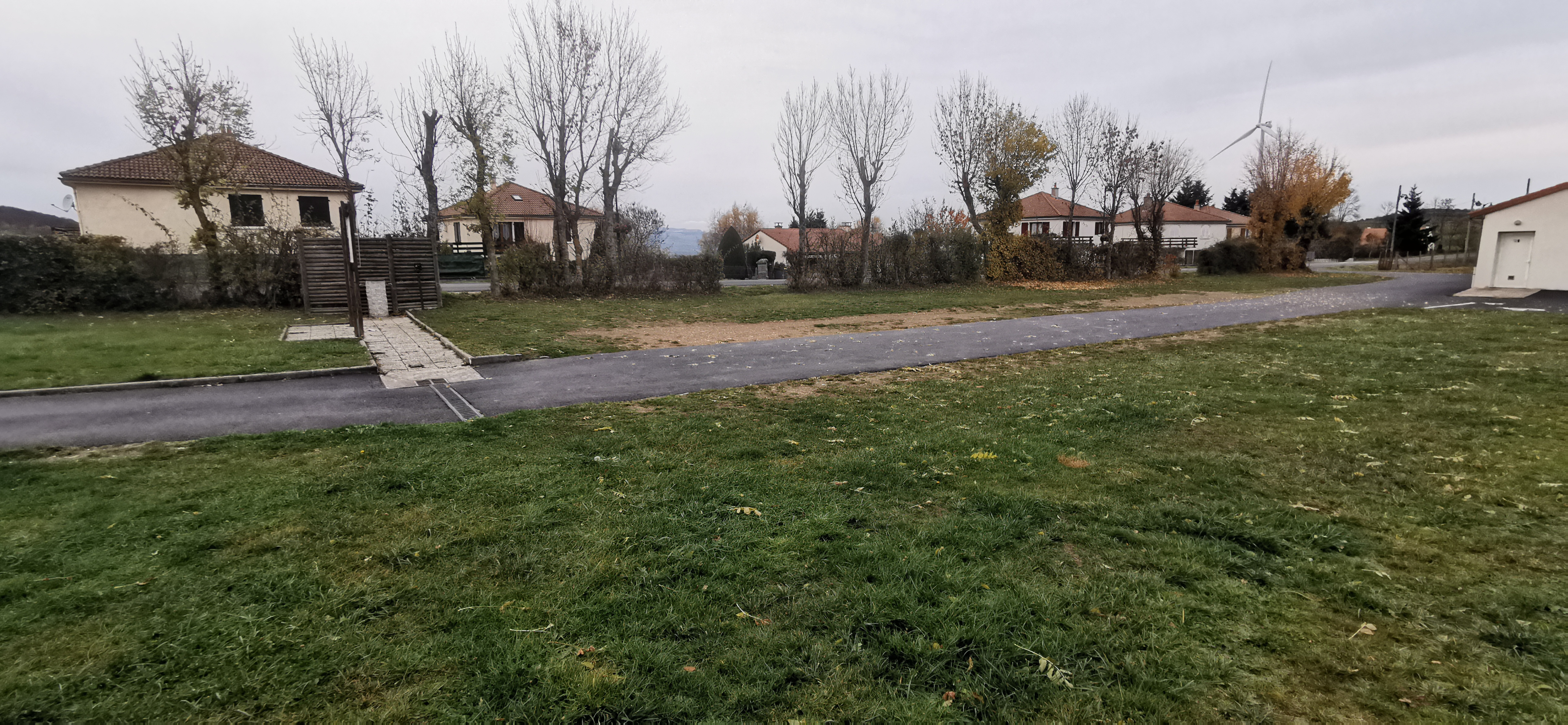 Parking à côté de l'aire de jeux et de la voie communale. Peu de circulation la nuit, très calme et pas d'eau en hiver
