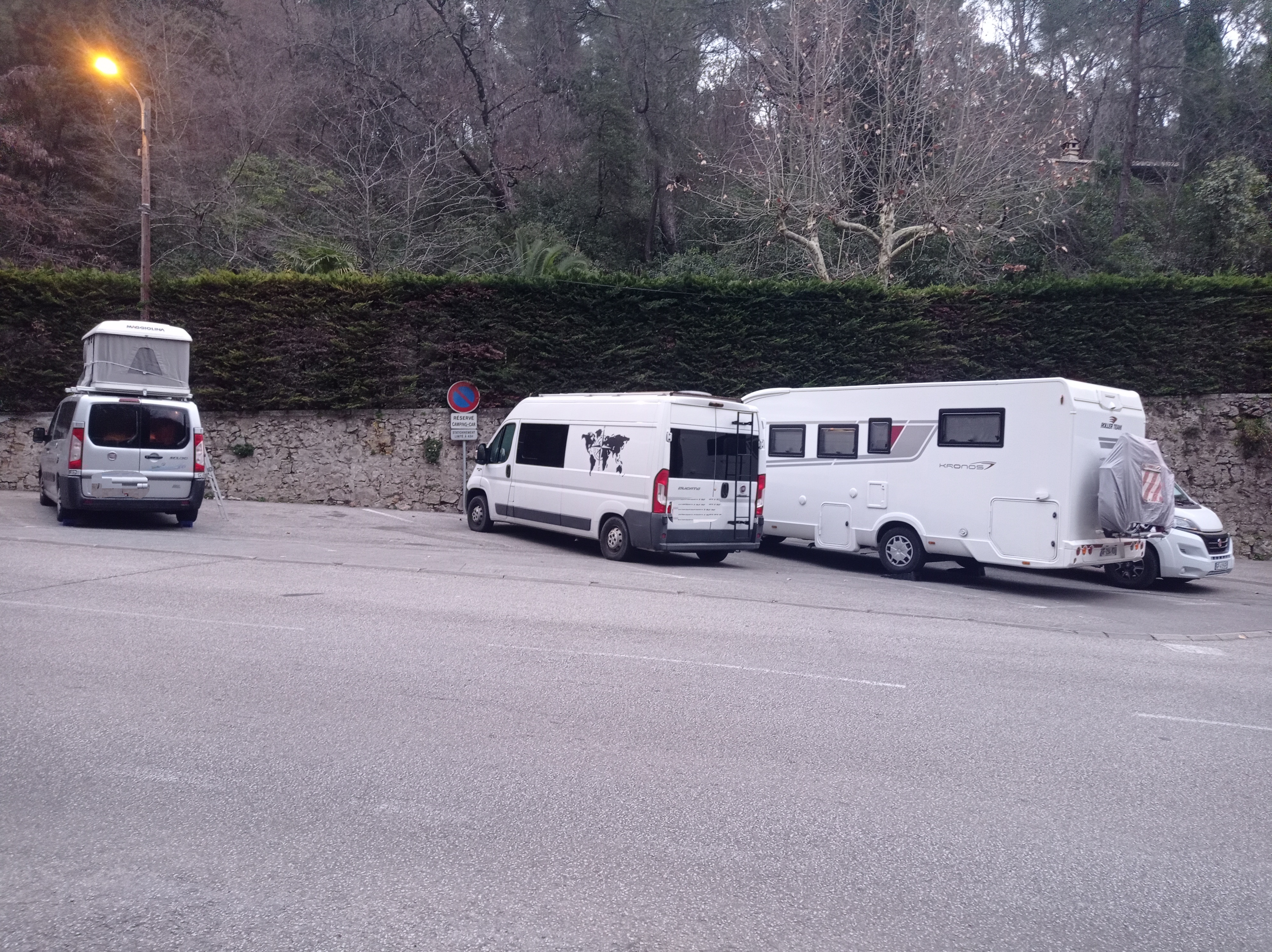 Solution d'urgence. N'a pas grand-chose à voir avec une place de stationnement pour camping-car