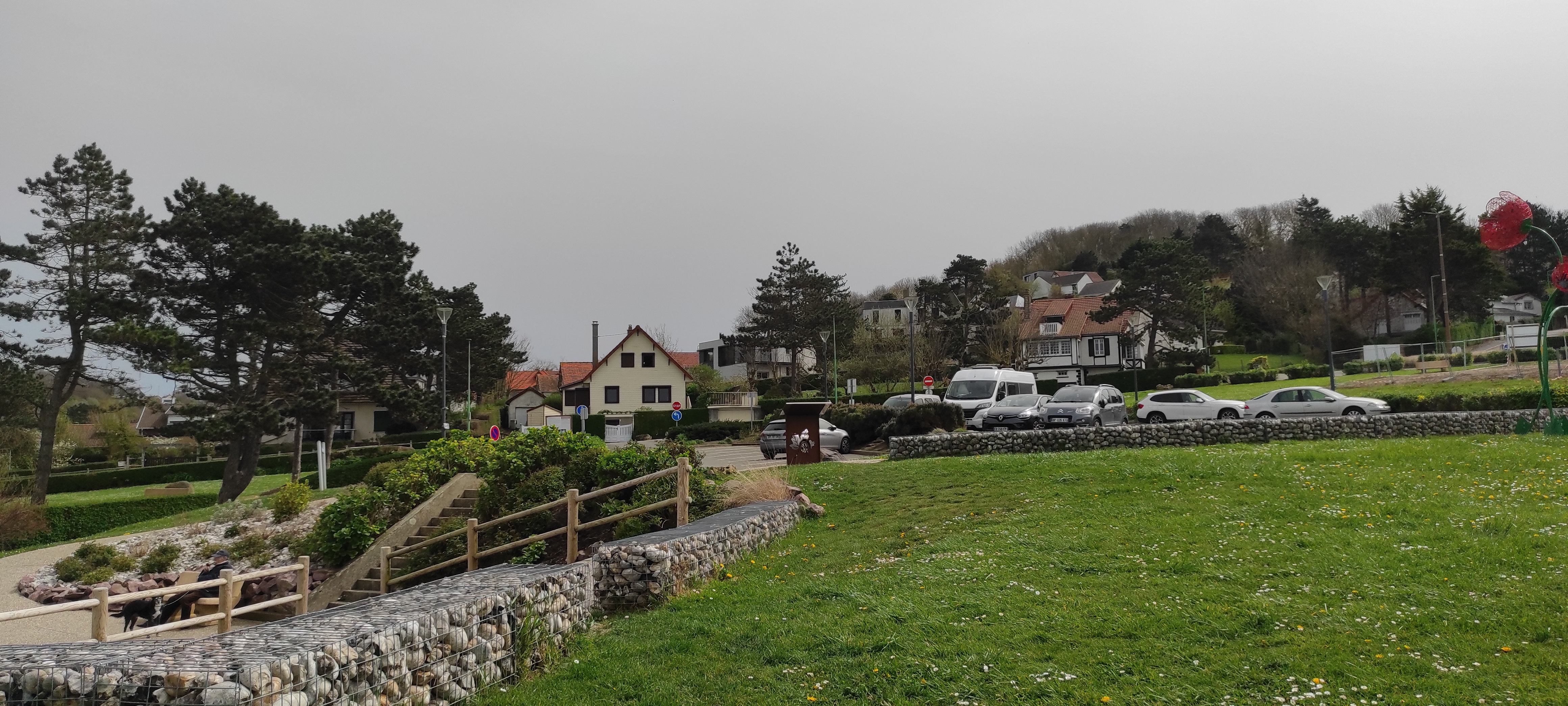L'endroit a beau être sympa et est gardé comme un faucon par le quartier, mais on a rarement vu autant d'interdictions 😱🥴Interdit aux chiens, vélos, camping-cars, etc. Accès rue à sens unique très étroite. Nous avons ensuite garé notre box dans un espace double pendant une heure où il n'y avait aucun panneau d'interdiction. Sinon, tout était très, très soigné et aménagé presque comme un jardin artificiel. Le chemin menant à la plage et aux falaises de craie est très court et facile à parcourir (escaliers). Donc deux étoiles