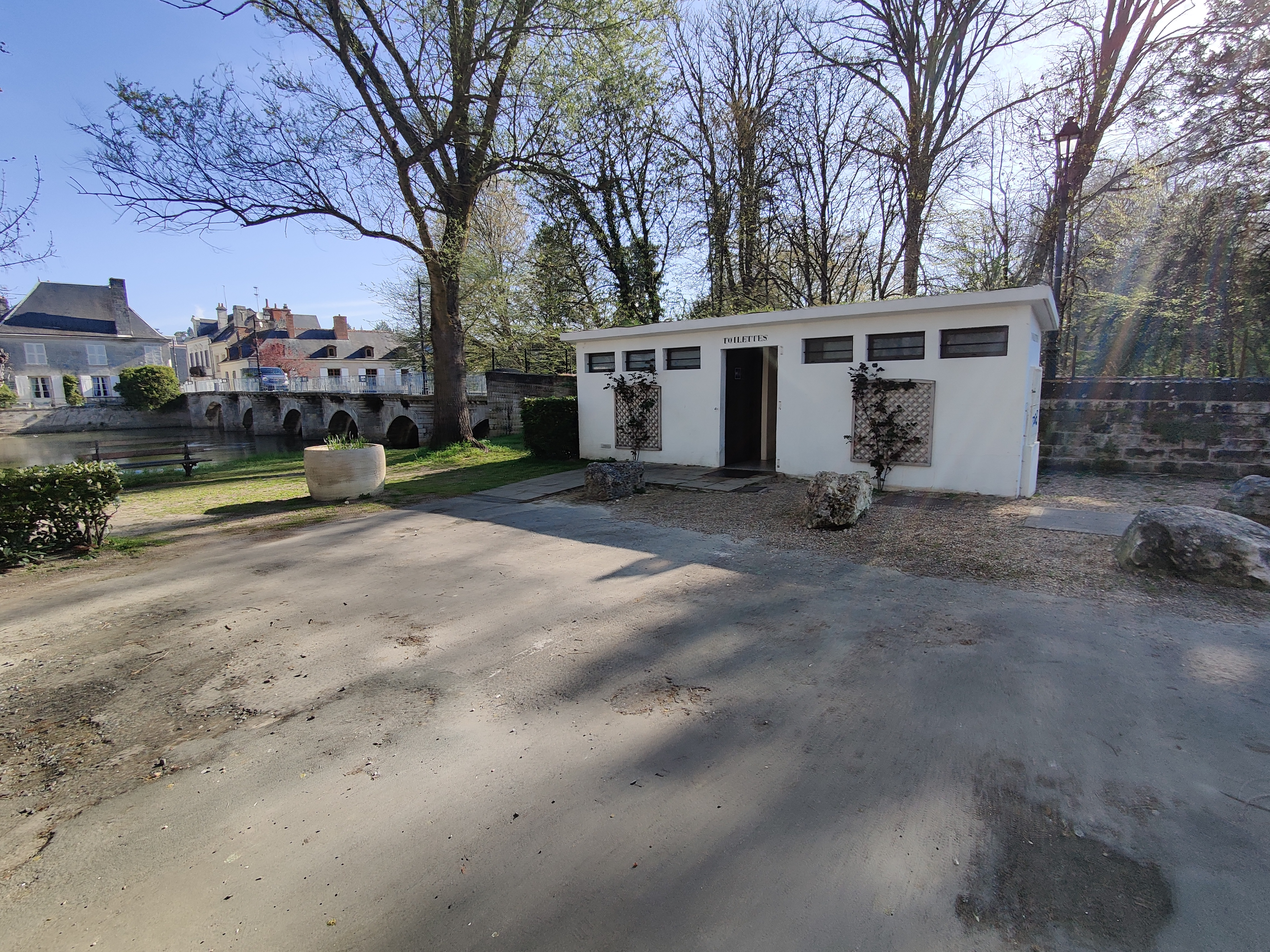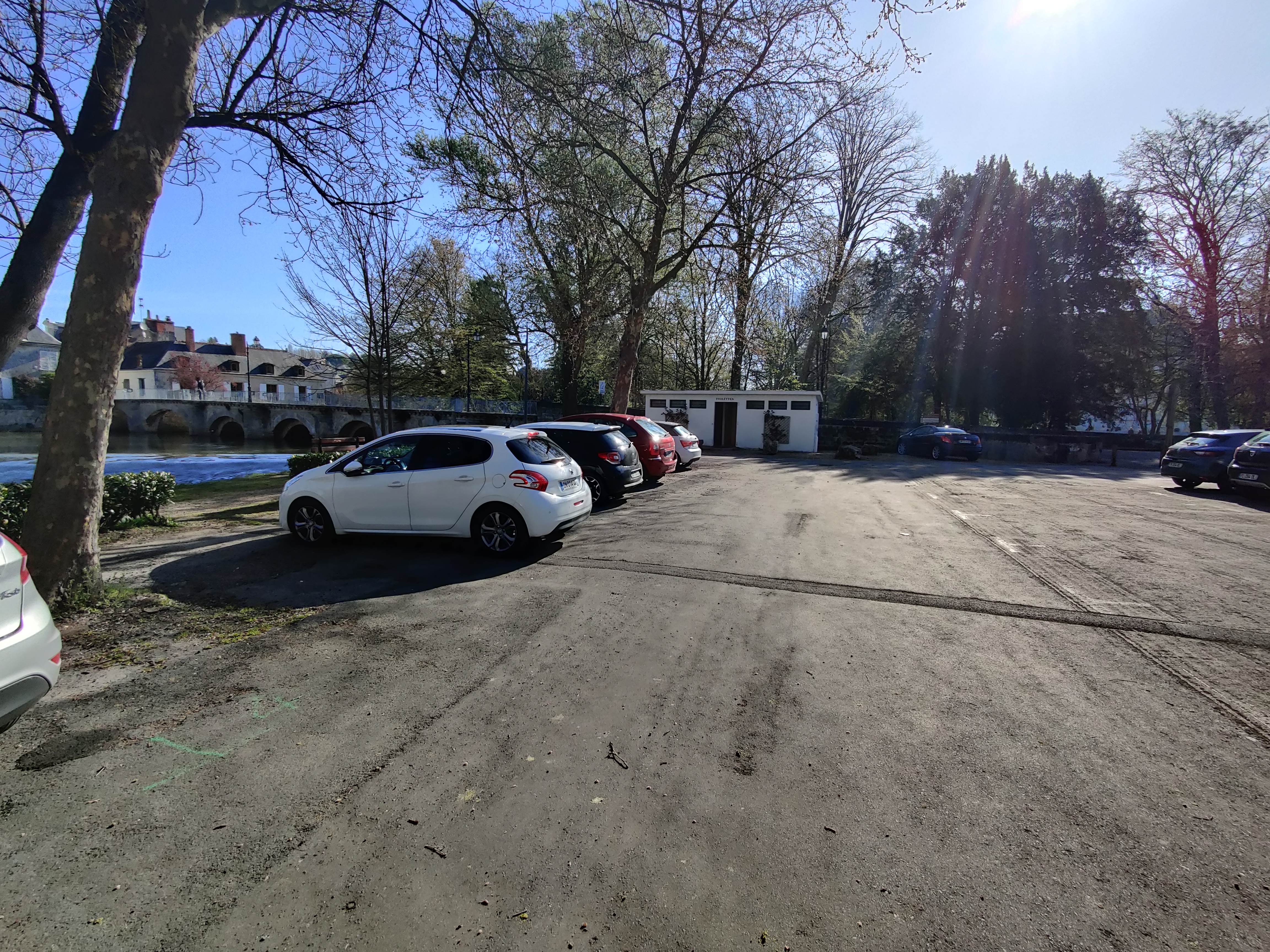 À côté du château, Parking payant avec toilettes sur ce parc. Un seul wc sur deux était ouvert, en pleine saison touristique ! Le comble est qu'il était complètement bouché... Je vous passe les détails !!! Honte à cette ville d Azay le rideau.