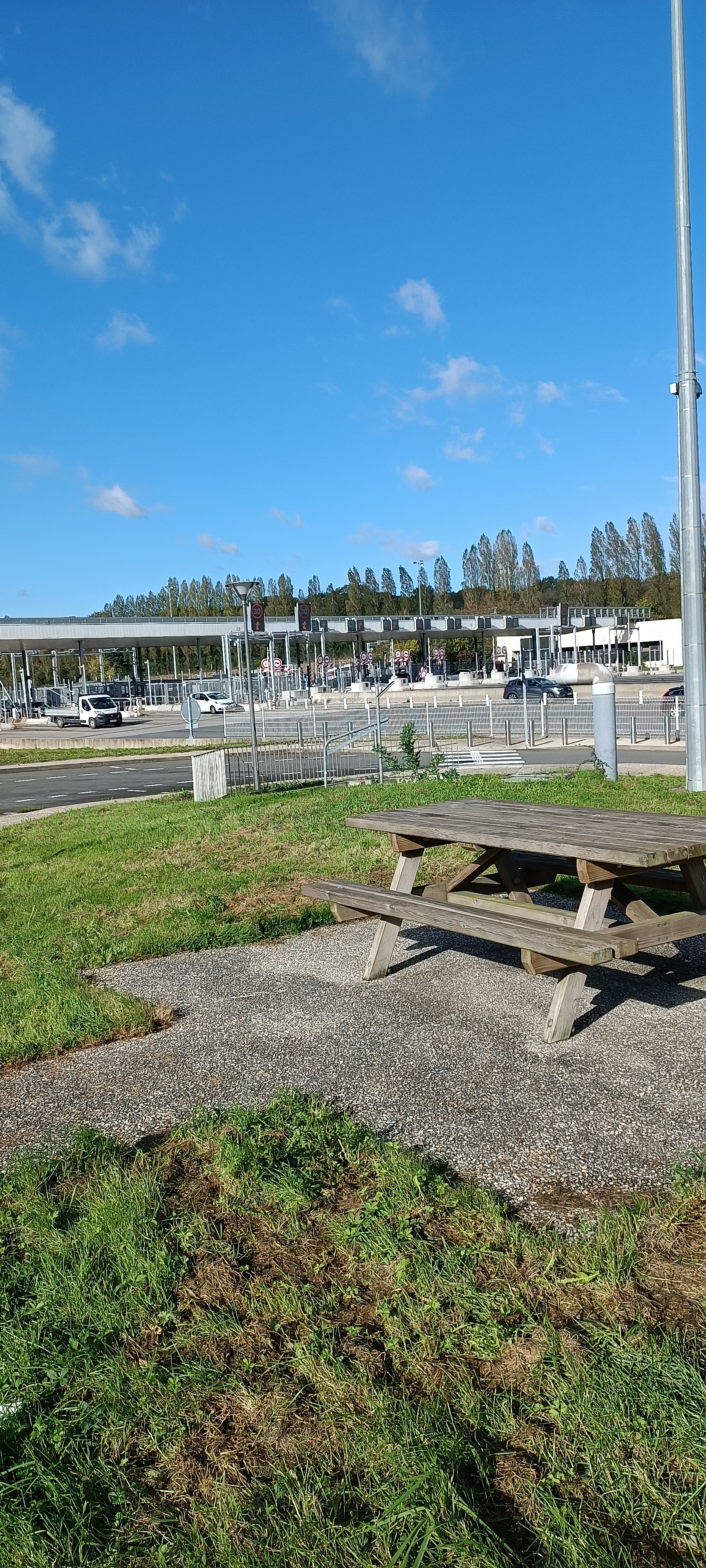 Facile d'accès. Quelques tables de pique-nique. Bien