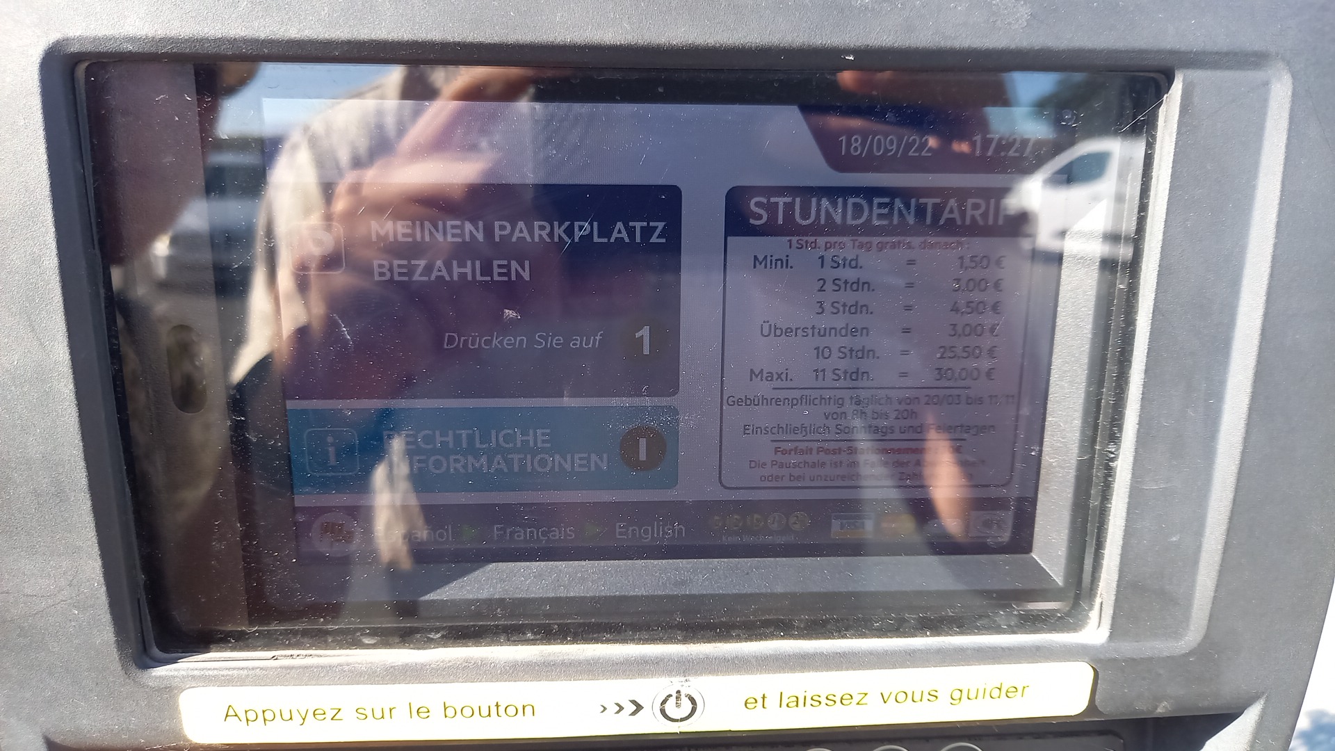 Bon parking à une courte distance du centre de Saint Martin-de Ré. Tarif pour 2 heures 1,50 €