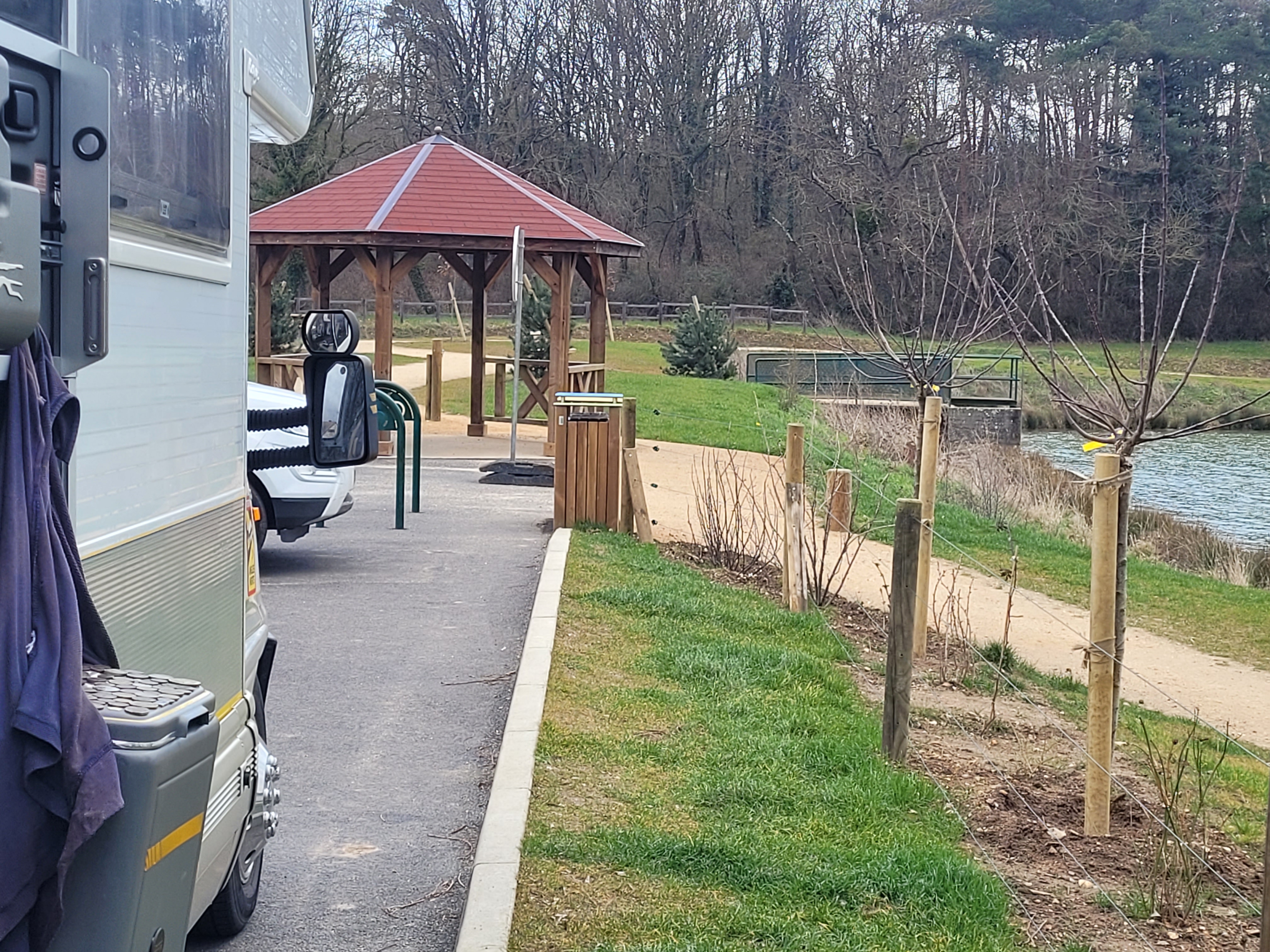 Une belle place de parking camping-car En pleine nature au bord d'un lac. Tout est très neuf et bien entretenu. Il y a des tables de pique-nique et une petite aire de jeux. La fourniture et l'élimination sont gratuites. C'est très calme ici et c'est super de promener les chiens. Je suis ravi et ne peux que recommander cette place de parking. Bravo à la communauté.