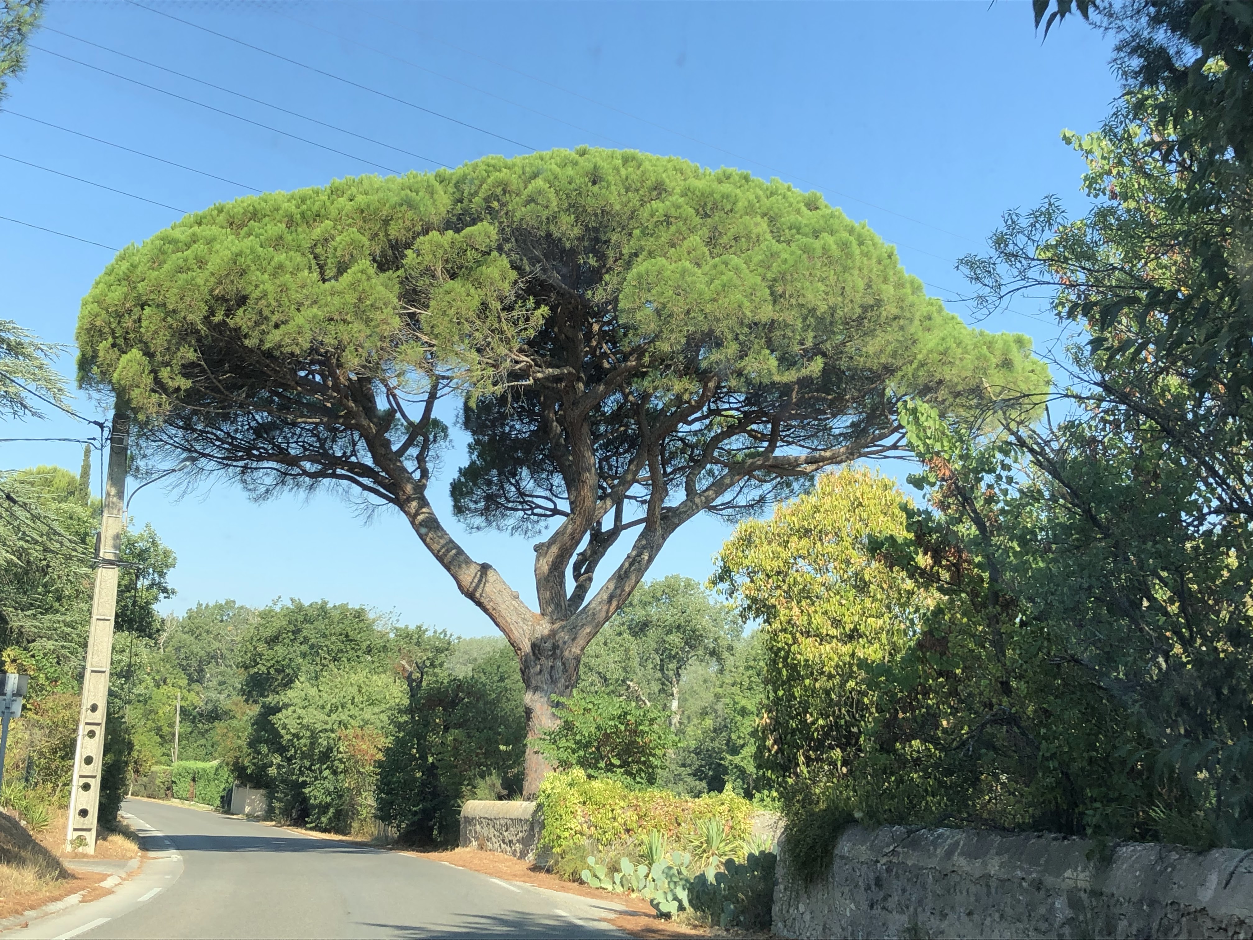 Parking de terre pratique pour garer sa voiture sous l'ombre d'un pin et partir en randonnée