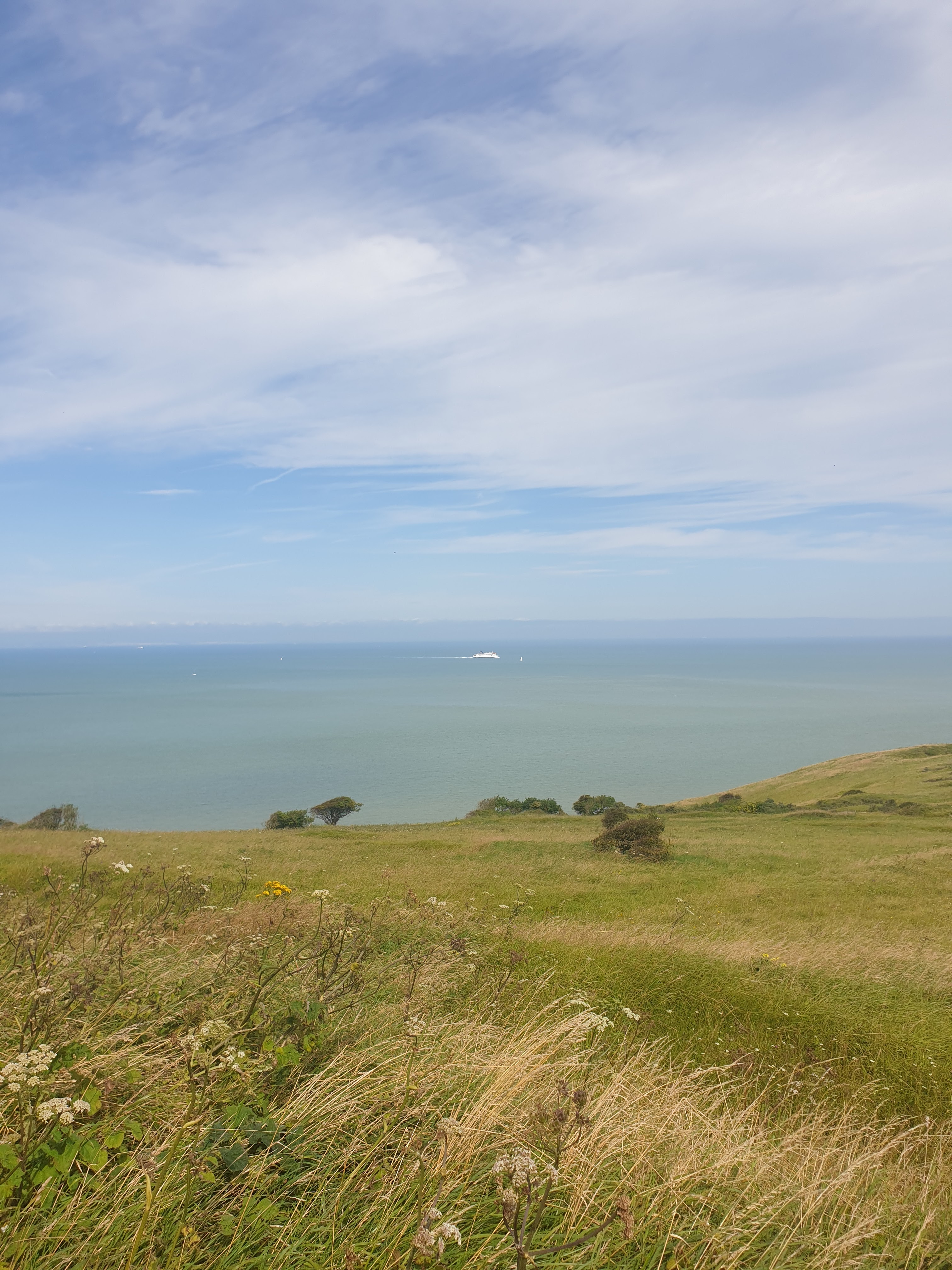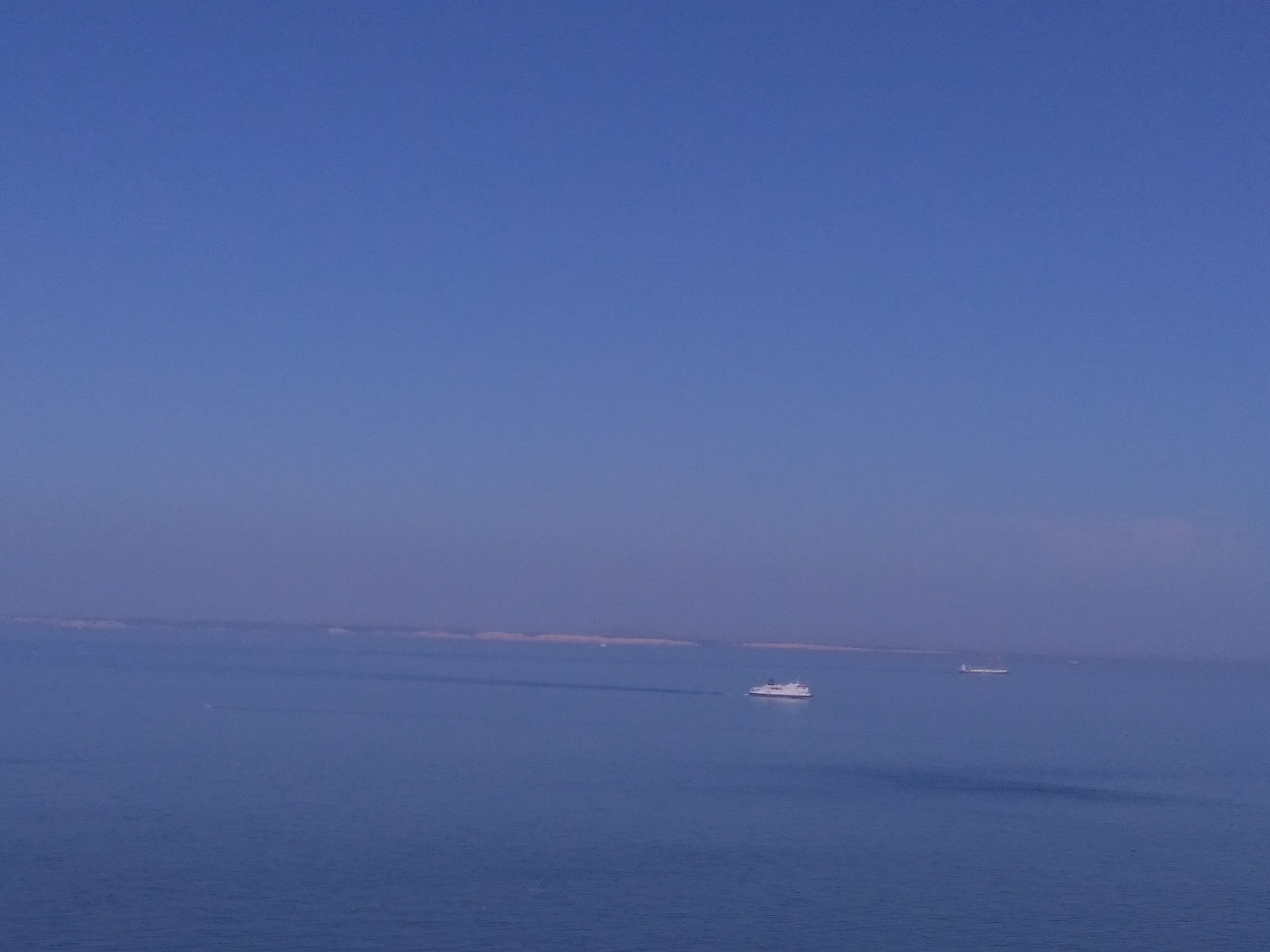 Superbe vue des côtes anglaises par beau temps mais pas trop belle vue des tankers qui défile dans l'estuaire