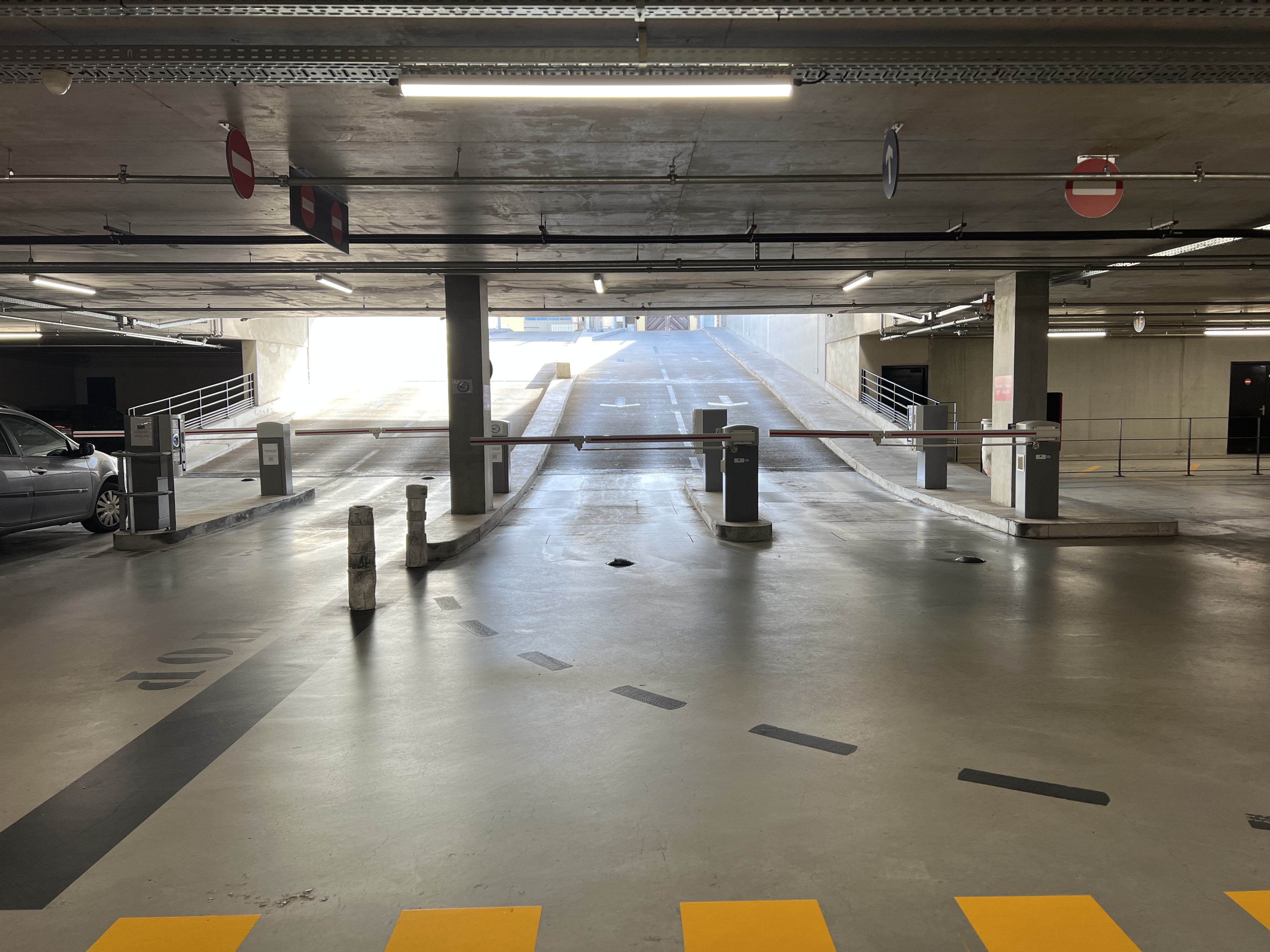 3ème sous-sol avec de l eau stagnante, ascenseur hors service, sortie avec un virage à 180 degrés en pente pas du tout pratique ... pas terrible pour un parking tout récent ! Juste à côté du centre-ville mais avant c était gratuit ...