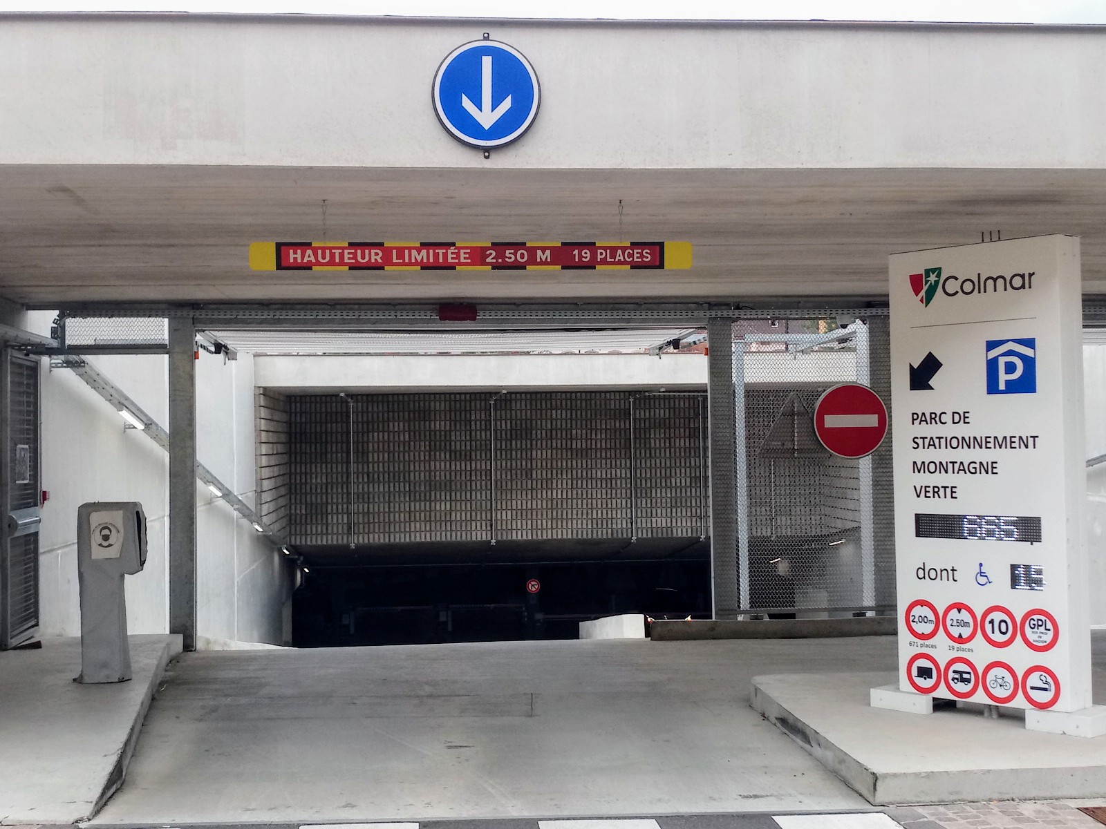 Garage moderne et spacieux avec de larges allées à proximité de la vieille ville de Colmar. Des toilettes sont également disponibles. Malheureusement très cher et apparemment avec des problèmes techniques : les billets n'étaient pas reconnus et diverses cartes n'étaient pas acceptées.