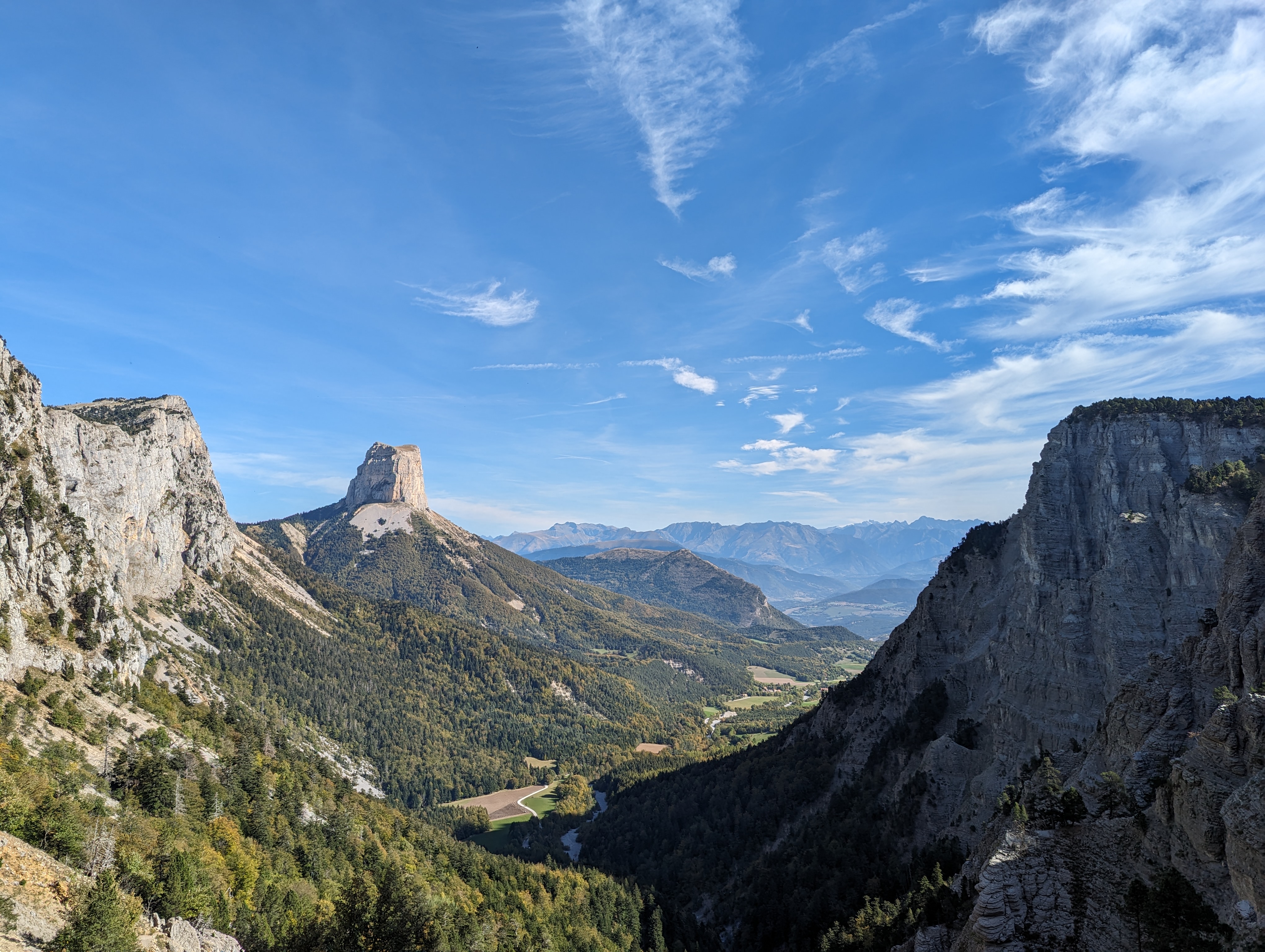 Excellente place de parking pour une belle promenade avec vue sur le Mont Aiguille. Espace suffisant pour environ 30 voitures.