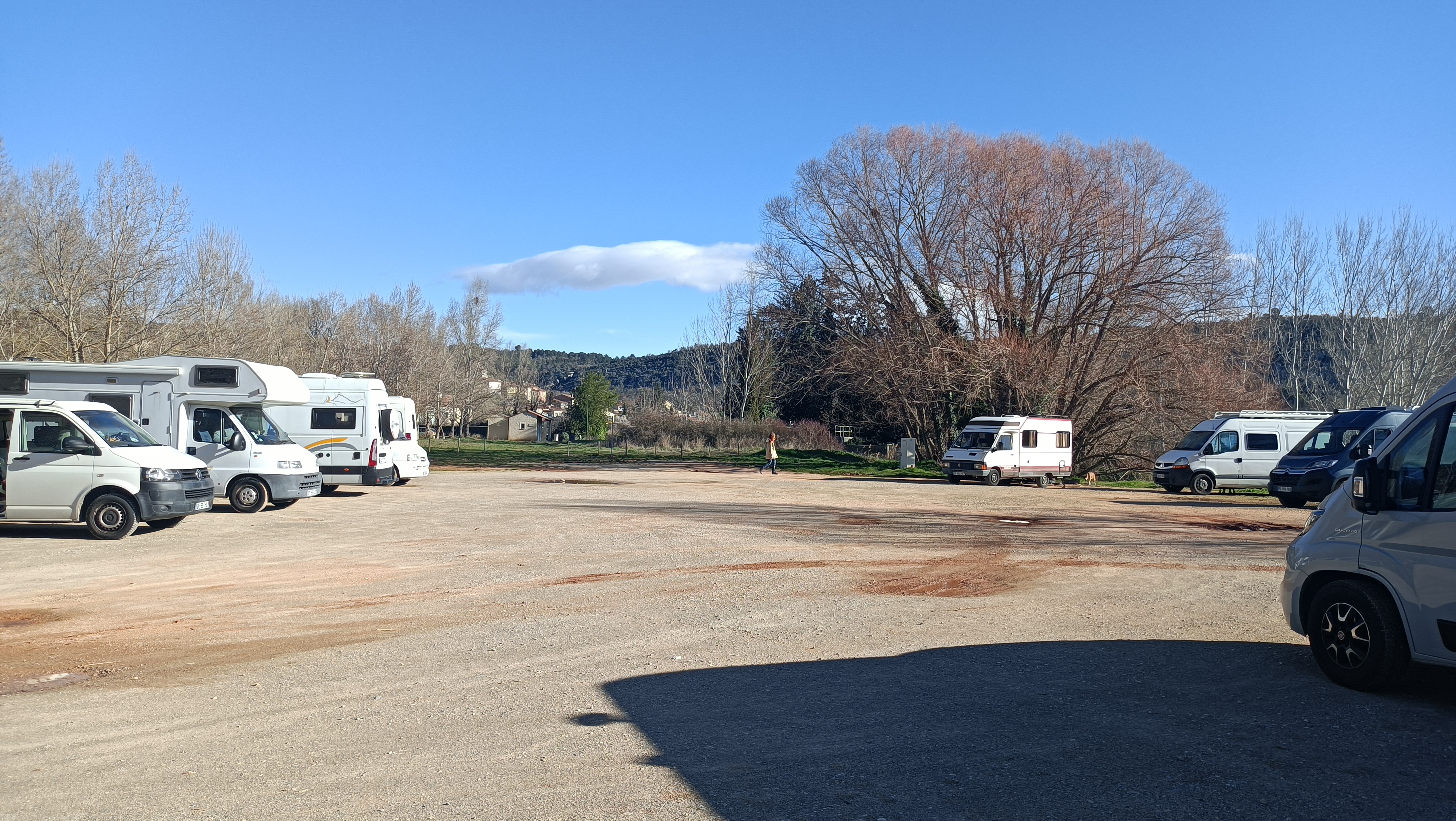 Idéal pour une nuit en camping-car ( mois de mars). Calme toilettes propres ce matin .