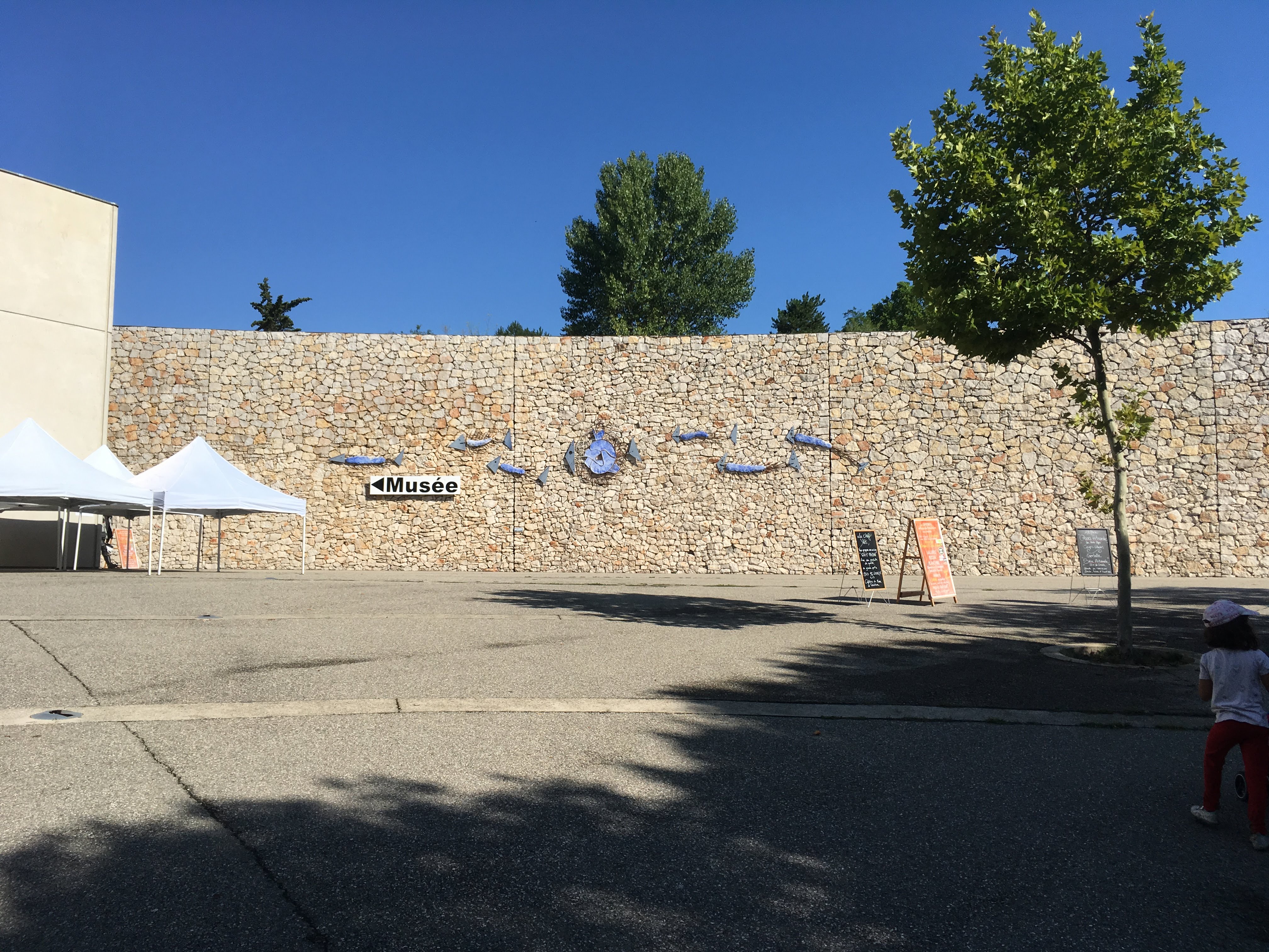 Parking du musée en terre battue et sous les arbres très agréable. Possibilité de se balader près du Verdon et de faire du canoë-kayak en saison.