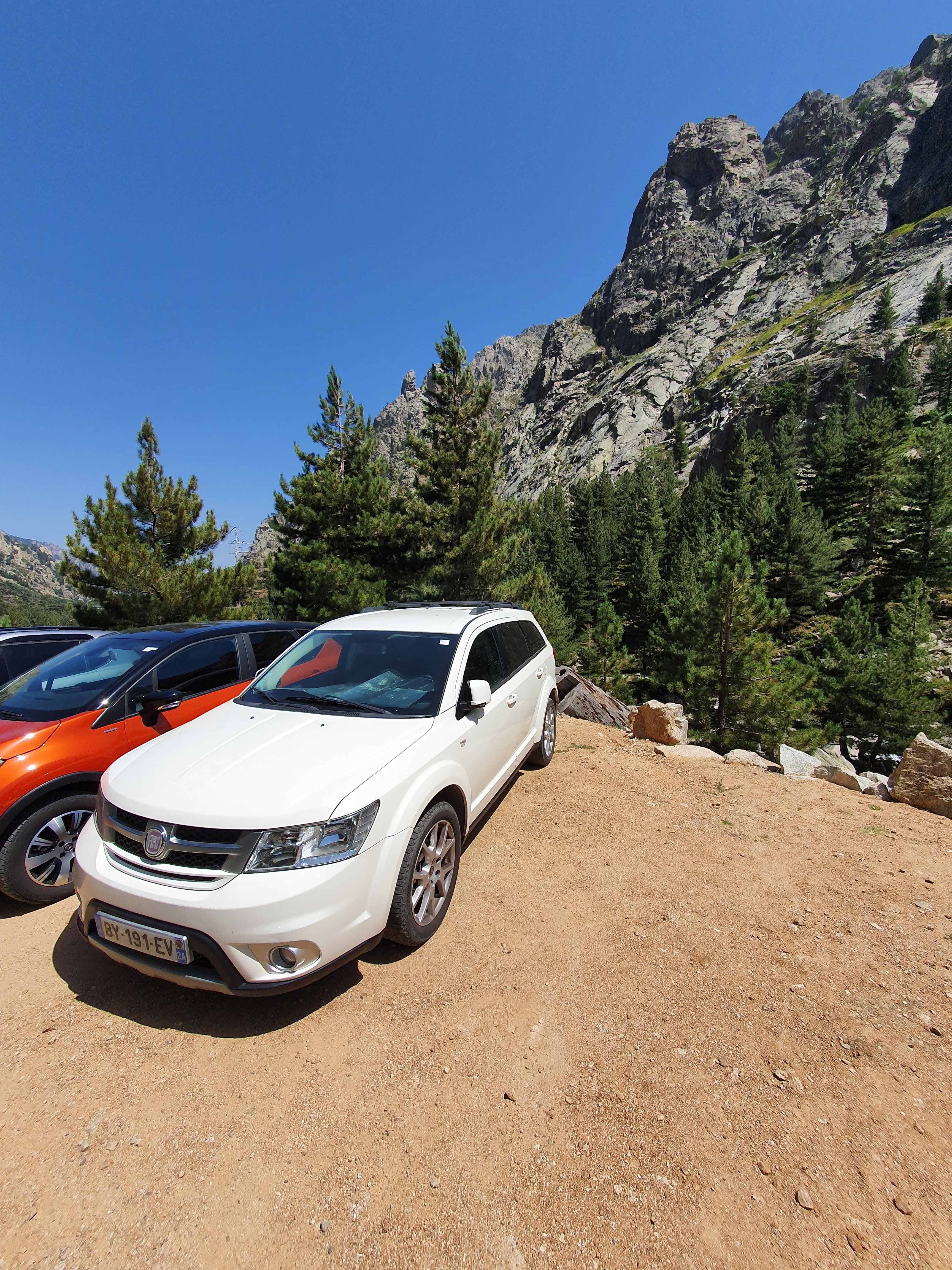 Nous étions heureux de payer les 6 € pour le parking. Les garçons et les filles veillent à l'ordre, sinon ce serait un chaos éternel. Une place vous est attribuée en fonction de la longueur de la voiture. Les bus VW, par exemple, se trouvent au tout début du parking, car sinon celui-ci est étroit et parfois à voie unique et il n'est pas toujours facile de tourner. Depuis le parking, vous marchez encore 1 à 2 km jusqu'au début du sentier de randonnée, seules les motos y sont garées. Le chemin vers le parking depuis Corte est une expérience, souvent à voie unique et sur des ponts étroits, mais ça vaut le coup !