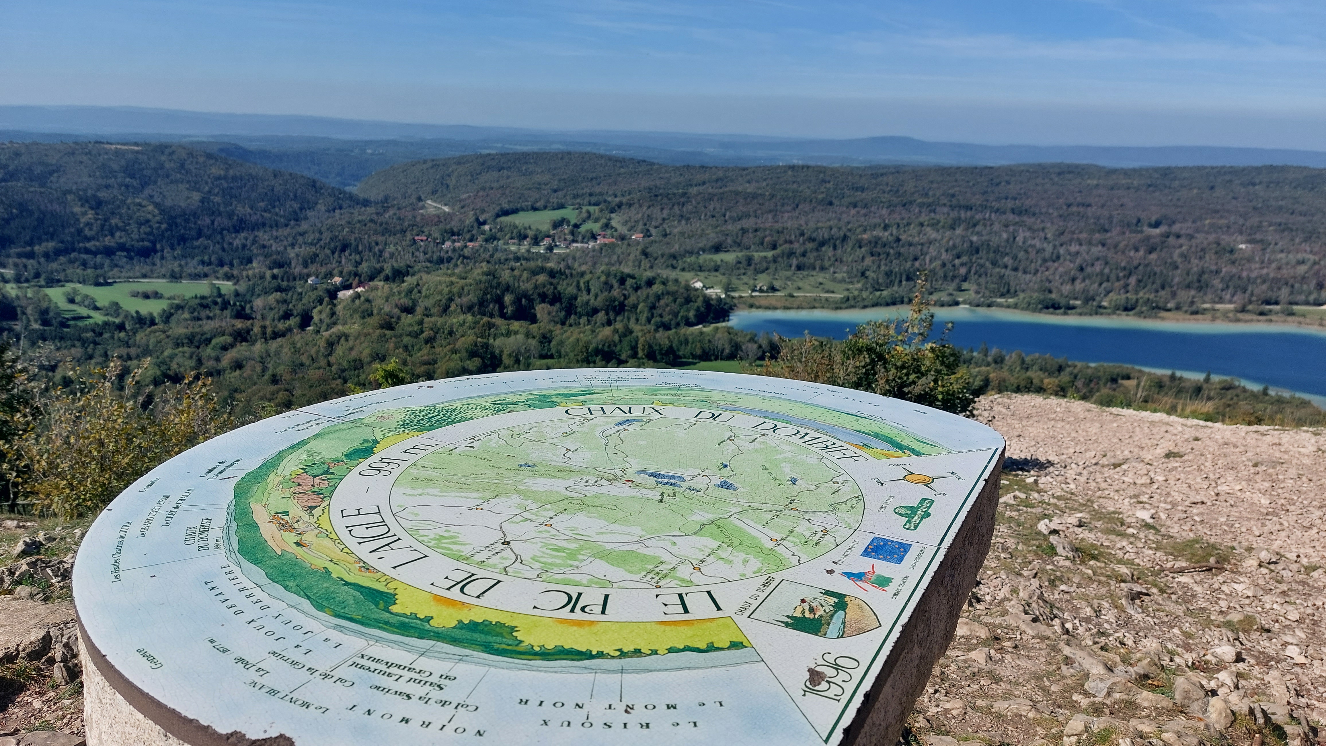 Perché à 998 mètres d’altitude, le Pic de l’Aigle offre un magnifique panorama sur le massif du Jura ! Le lieu est facilement accessible depuis le parking en 20 minutes à pied. Poursuivez votre balade en allant au belvédère des 4 Lacs pour avoir un autre point du vue sur les environs.