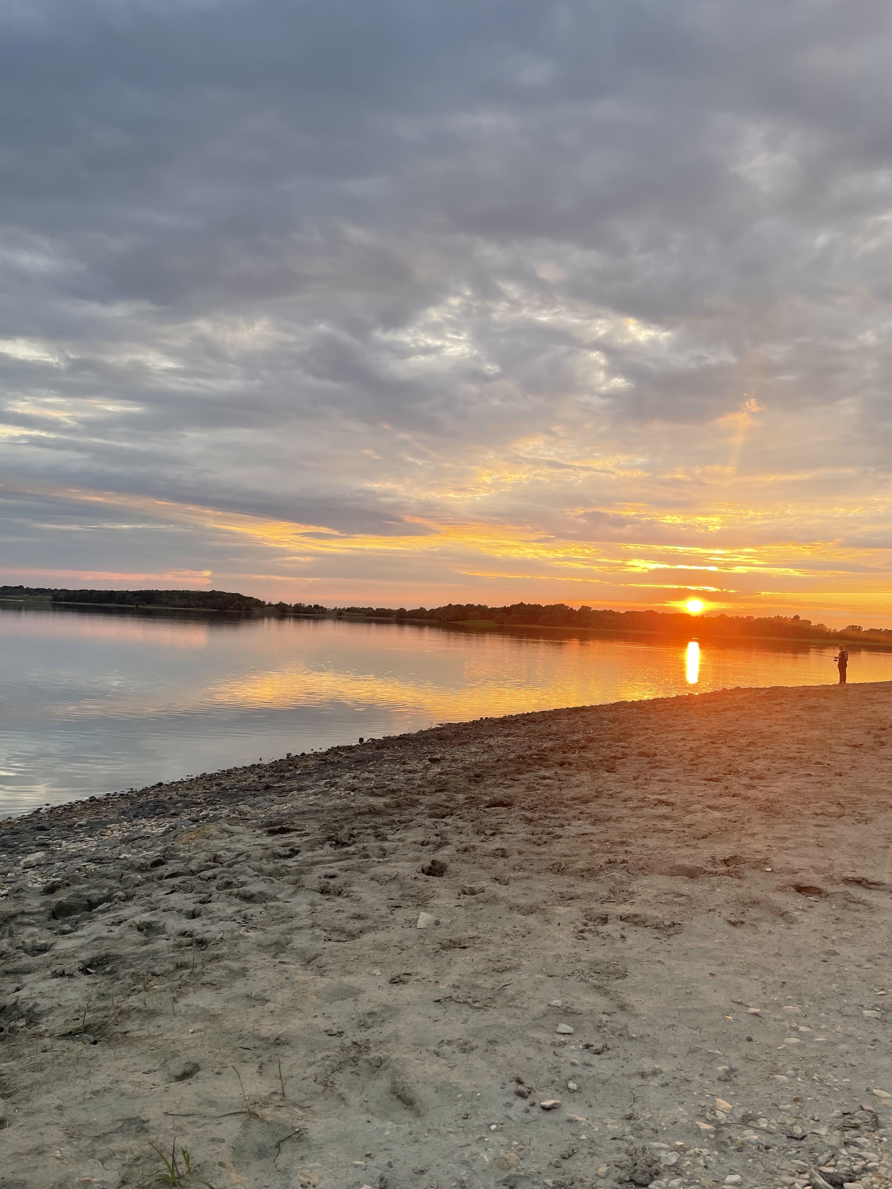 Parc de camping-car calme, nous avons installé une tente et avons un petit feu de joie sécurisé pour cuire des pommes de terre en veste. Pas d'eau potable. Une grande place de parking plate juste à côté du lac. C'est bien de s'y garer. Nous le savons car nous l'avons fait et le contrôleur des pêches nous a souhaité de bonnes vacances. Ne faites pas attention aux pêcheurs malhonnêtes qui pourraient vous dire que vous recevrez une amende de 150 $ si vous le faites. Beaucoup de moustiques la nuit en août. L'eau du lac peut être utilisée pour faire la vaisselle si vous la faites d'abord bouillir. Arbres à proximité. L'eau est bonne pour la baignade même si elle est un peu rose, j'ai gardé mes chaussures car elles sont plutôt boueuses et rocheuses. Des tas de pêcheurs avec des bateaux à hélices (même si les hélices sont interdites) et des remorques, arrivent au lever du jour un samedi donc c'était très bruyant, un pêcheur a délibérément choisi un lieu de pêche pour que nos enfants ne puissent pas nager pendant environ 6 heures, tandis que nous jetant des regards sombres. Les moustiques nous ont finalement chassés.