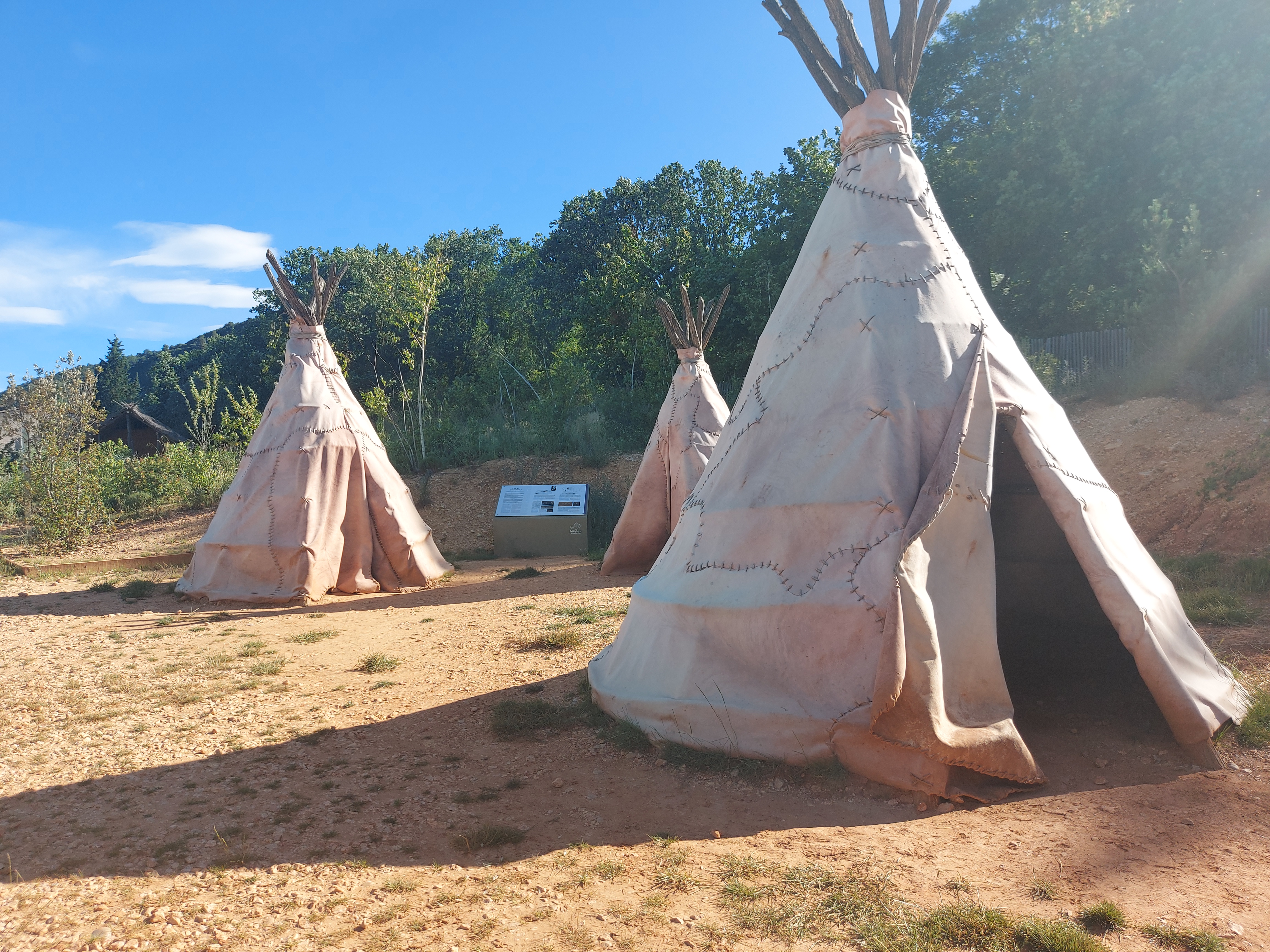 Bonjour, parking en terre, avec quelques arbres, endroit à ce jour sans télévision( sauf parabole) pour la téléphonie c'est incertain suivant l'opérateur, le positif maintenant cest les jeux, l'accés au bain, la navigation sur le Lac, les restaurants, le musé, il y a des toilettes, bonne cave à vin au sortir de Quinson, le village je ne l'ai pas visité.